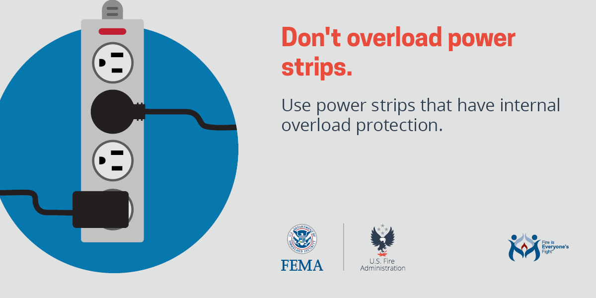 - Never overload extension cords or electrical outlets.